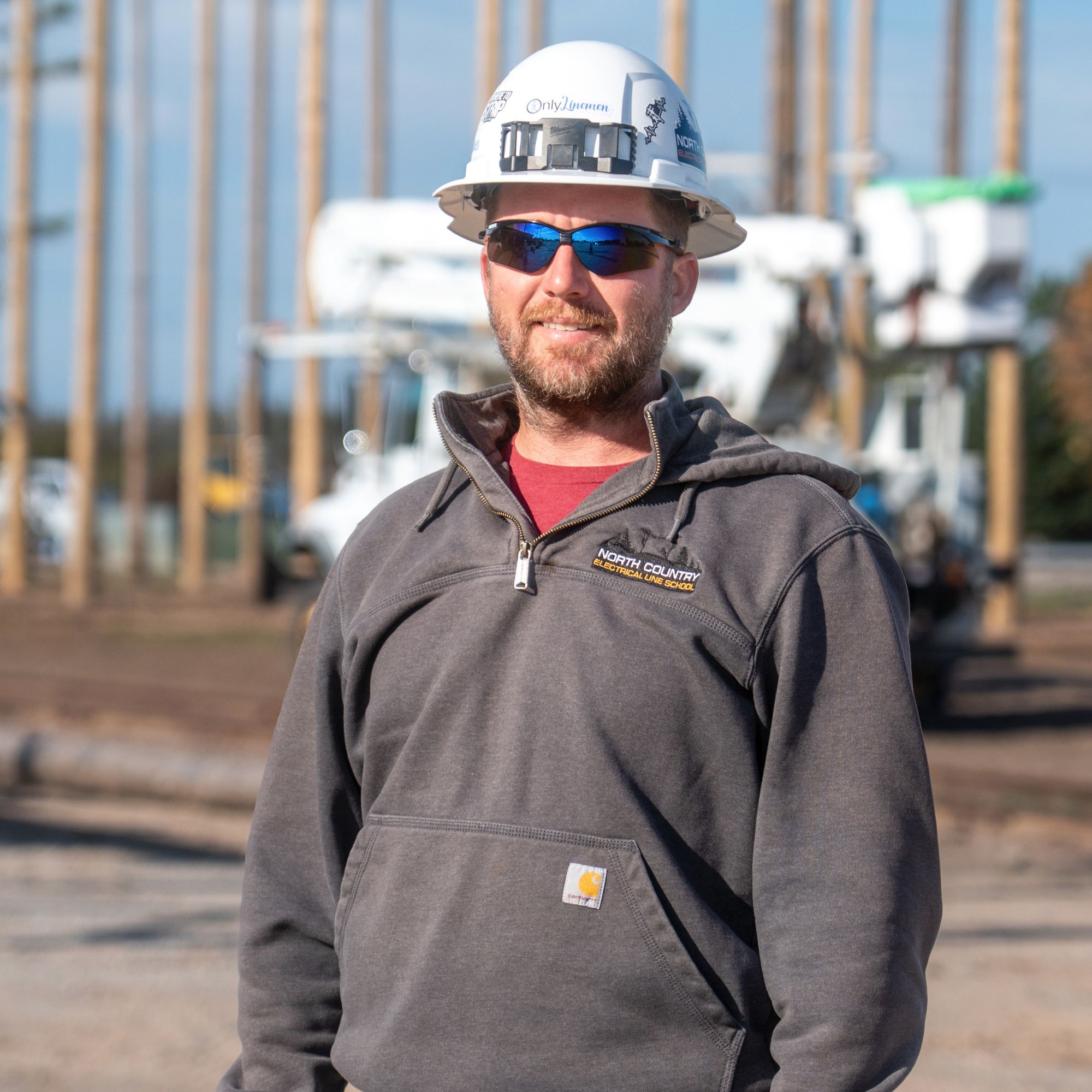 You won’t find many photos of Weaver—he’s usually too busy teaching, troubleshooting, or stringing wire to stop and pose. As one of our most hands-on lineman instructors at North Country Electrical Line School, Weaver leads from the front with a work ethic that sets the tone for the entire yard.